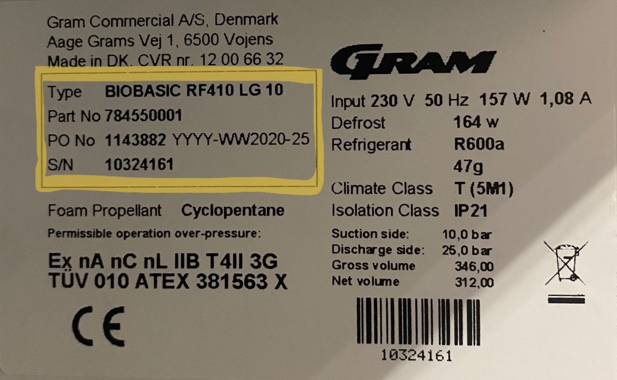 Zorg ervoor dat je het modelnummer van je Gram koeling noteert.